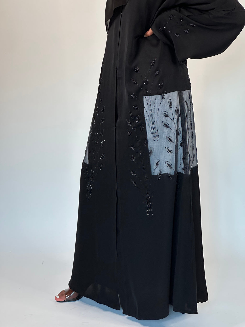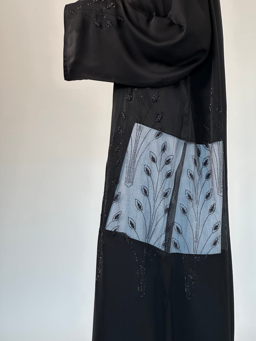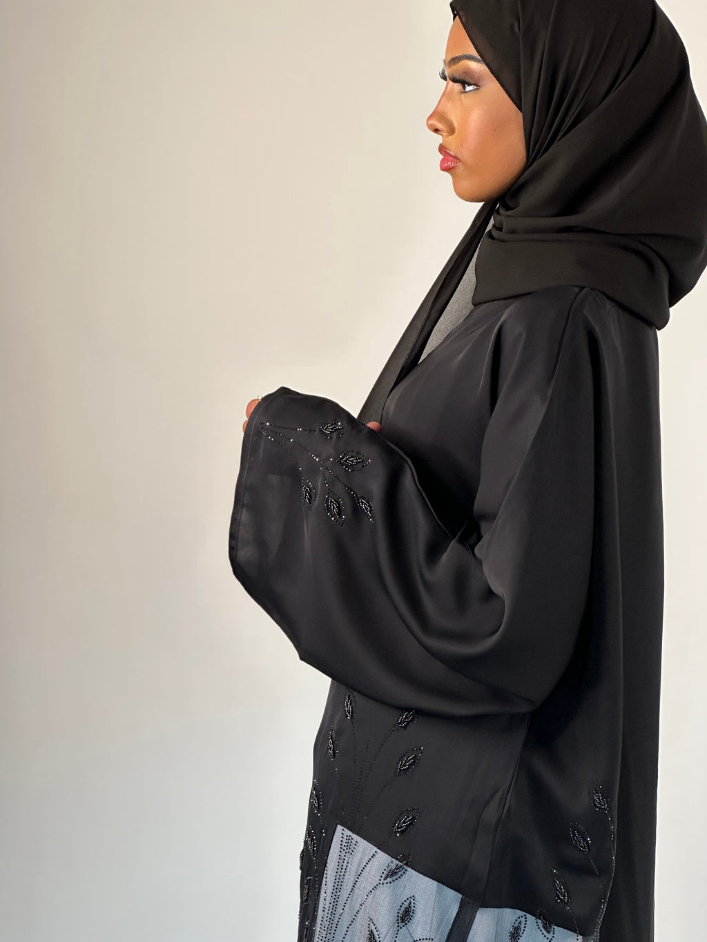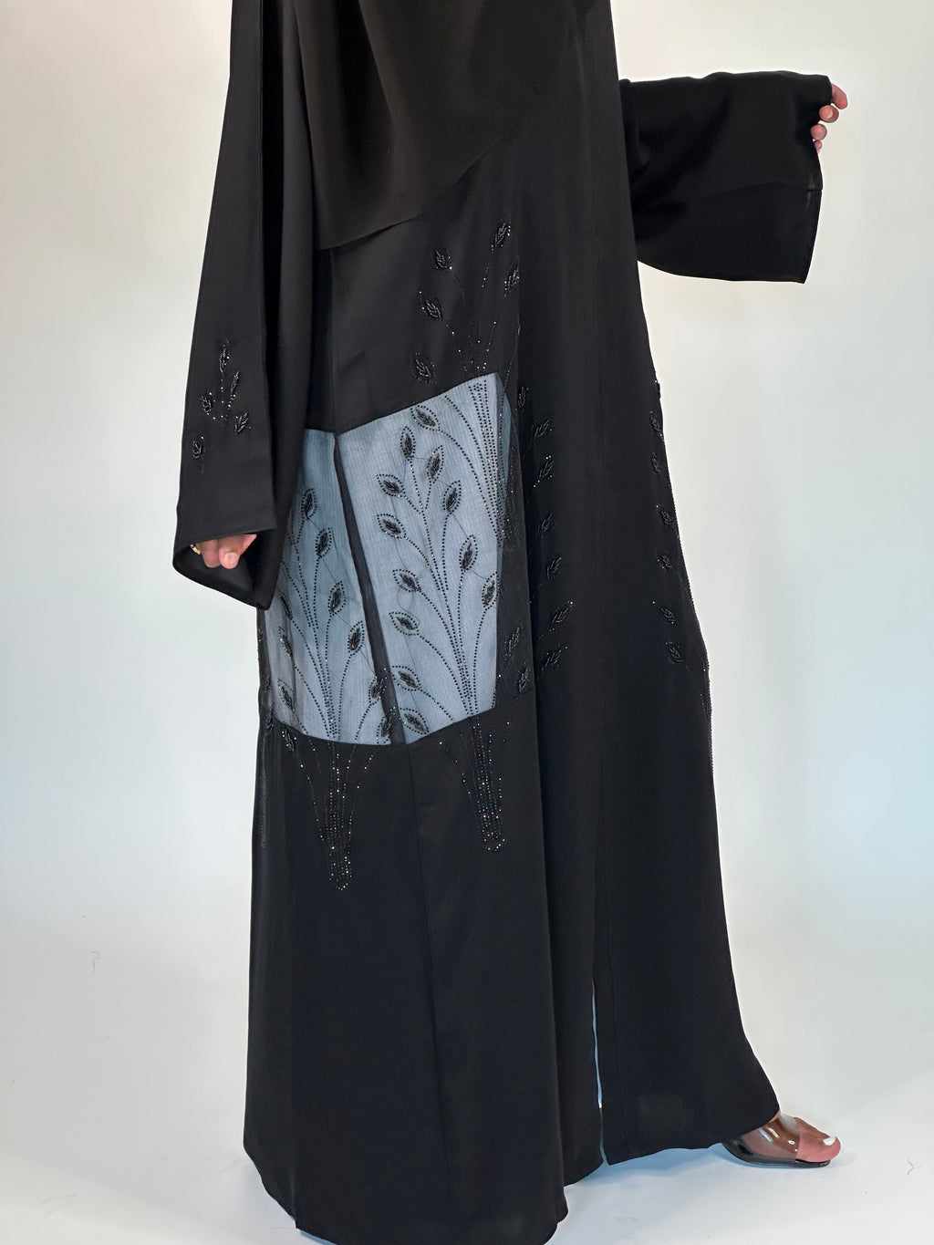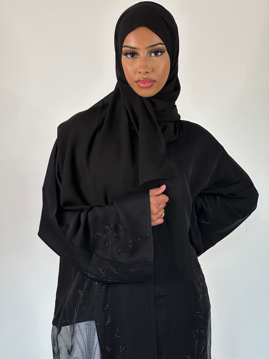 Extremely eye catching and glamorous addition to your Black abaya collection.
