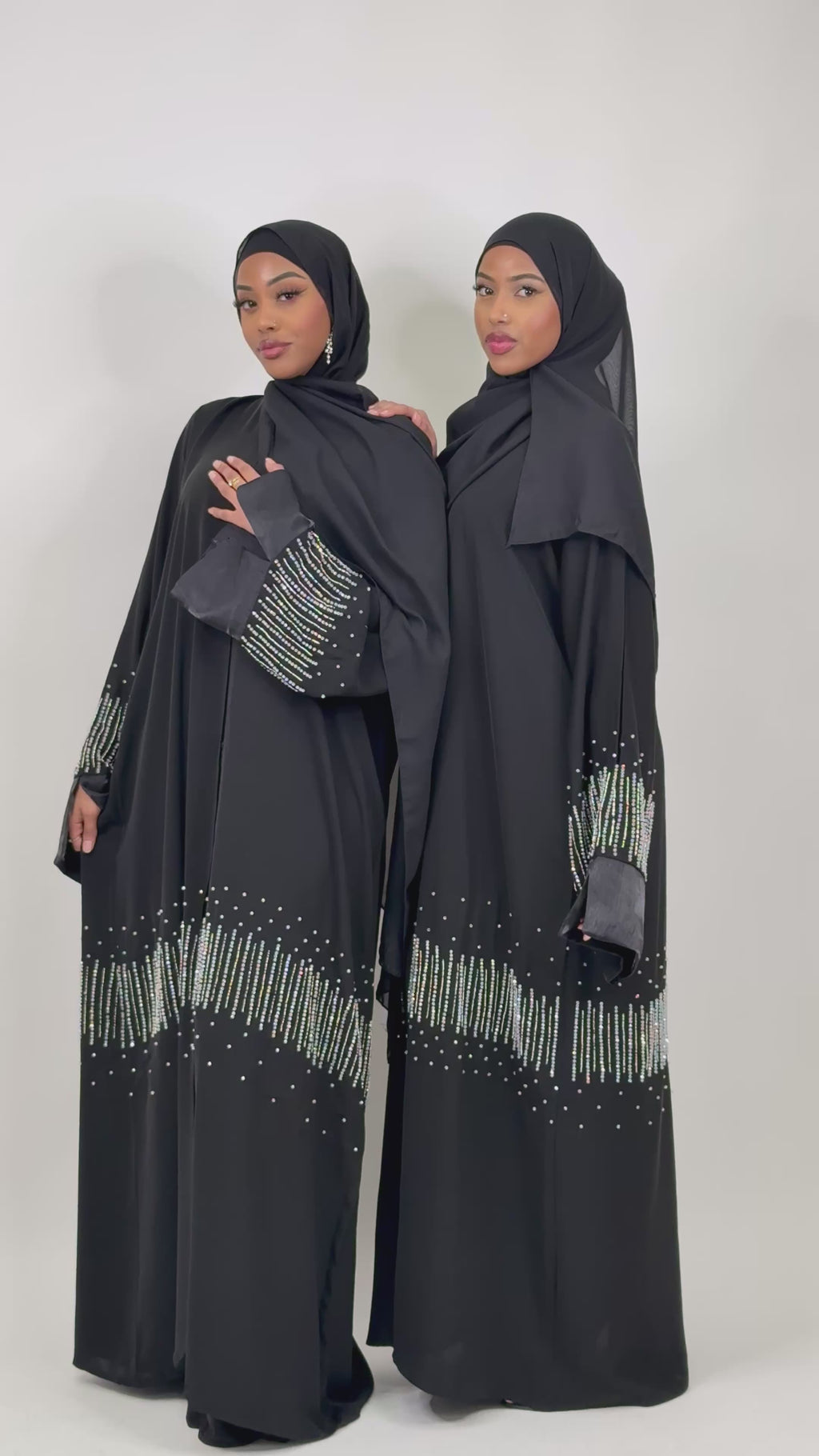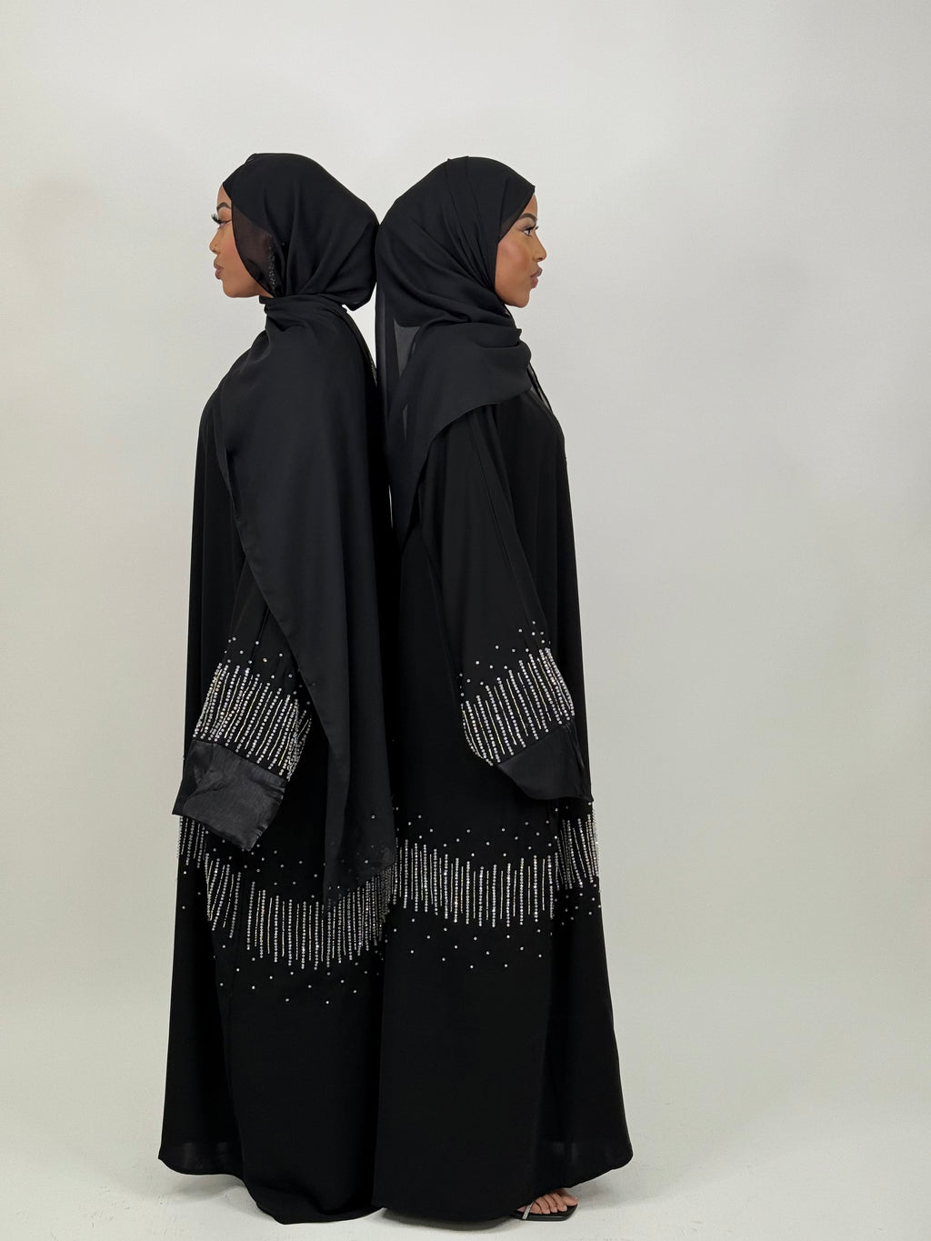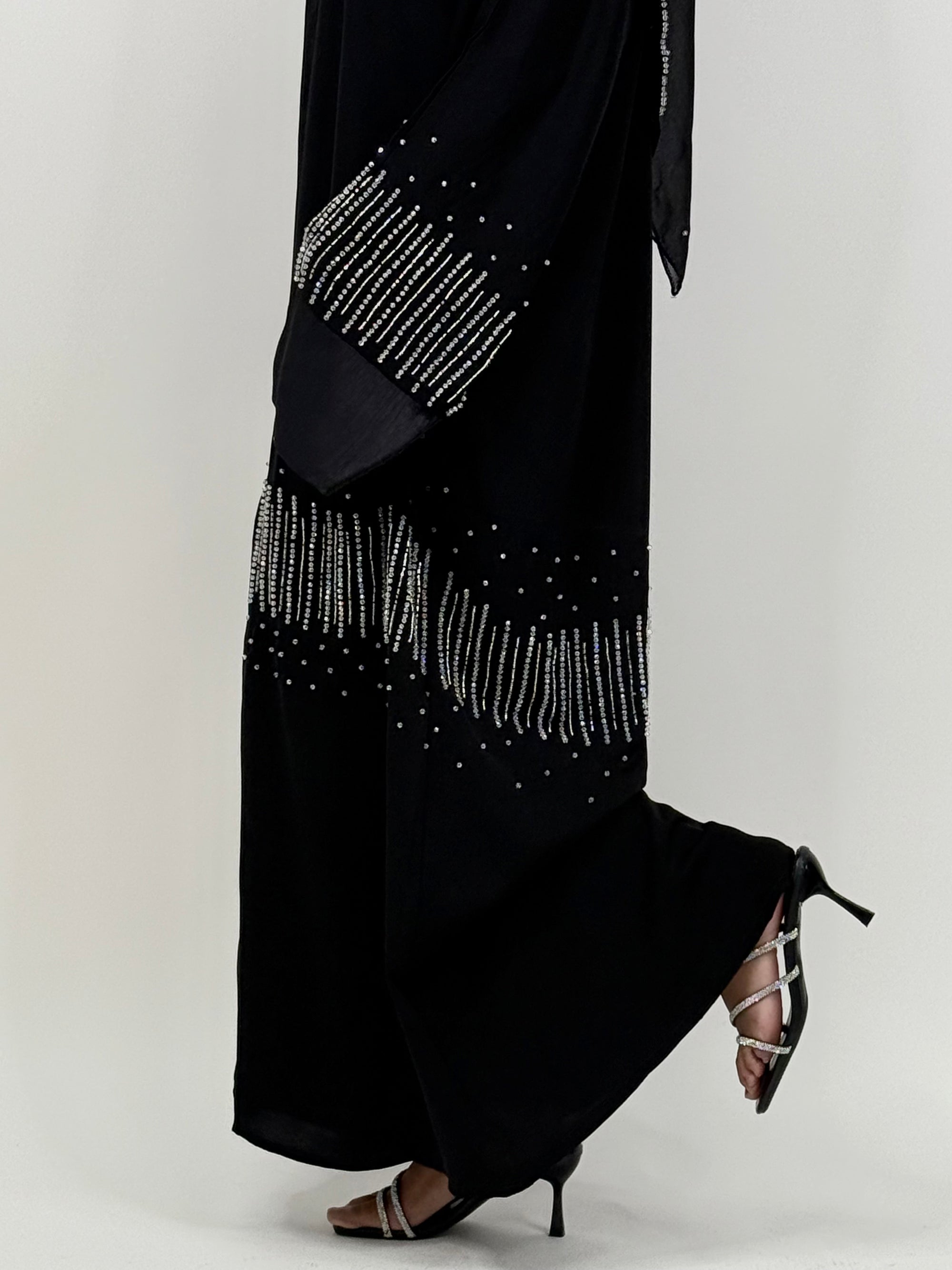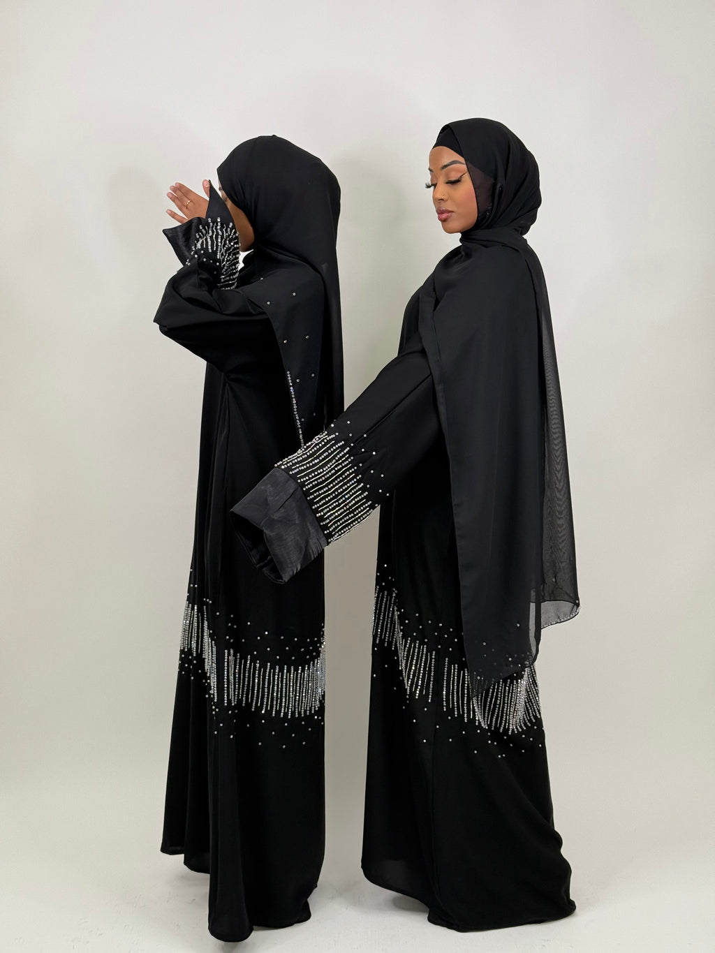 Specially designed with the finest silver beads around the arms and whole length of the abaya.