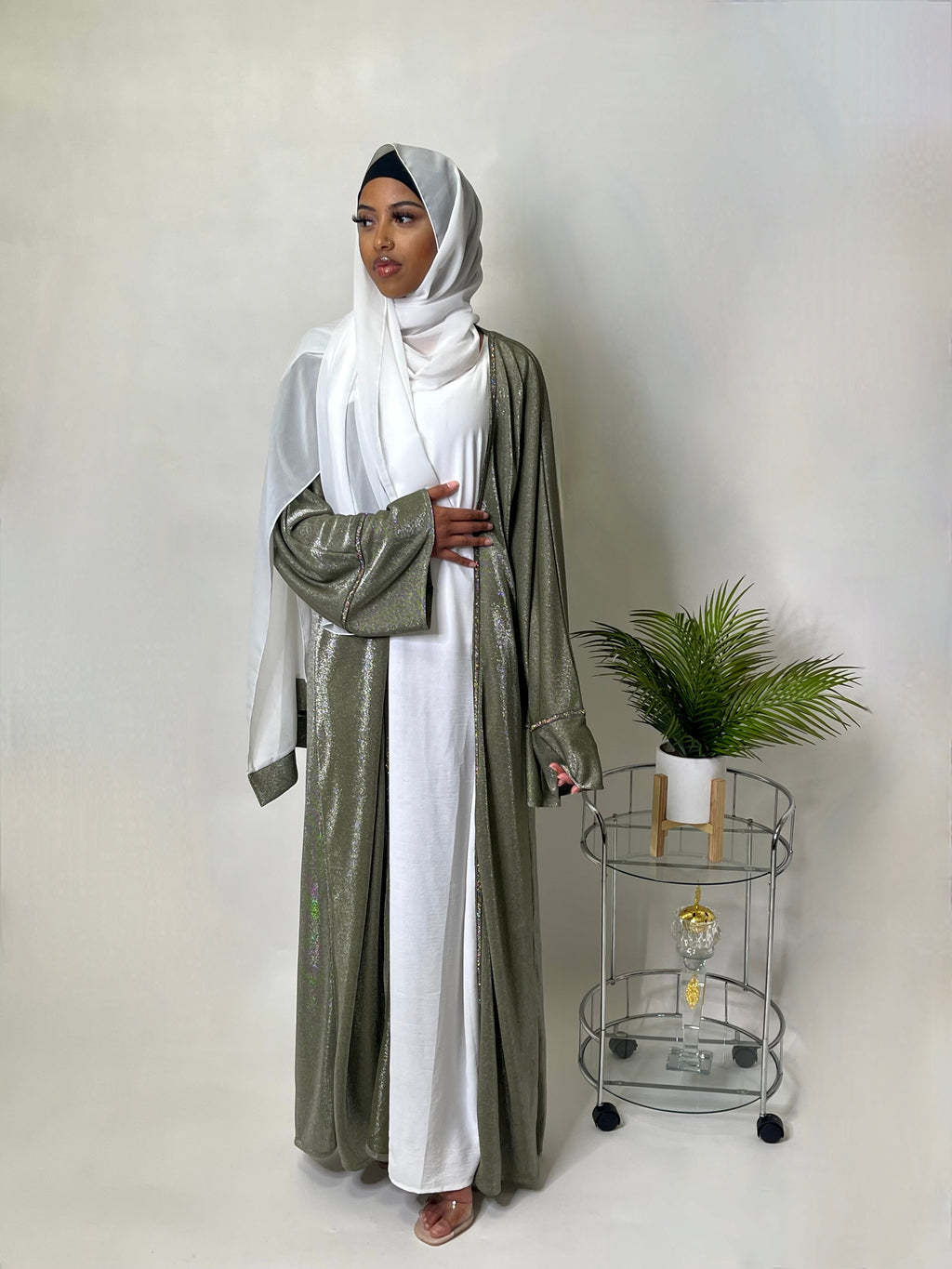 Mirror abaya set (olive/Rosegold)