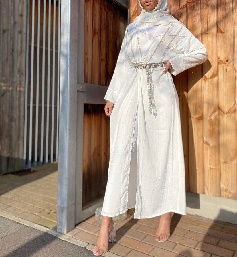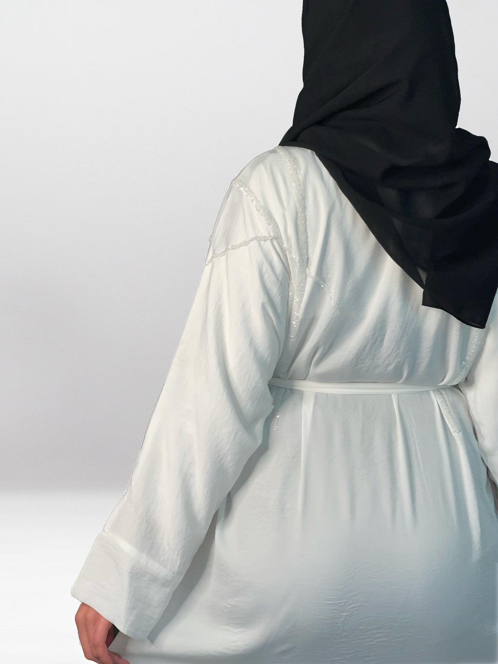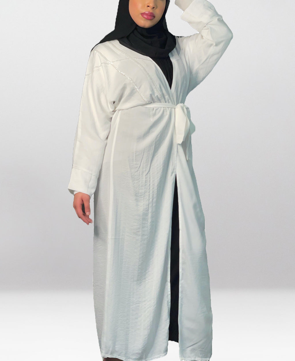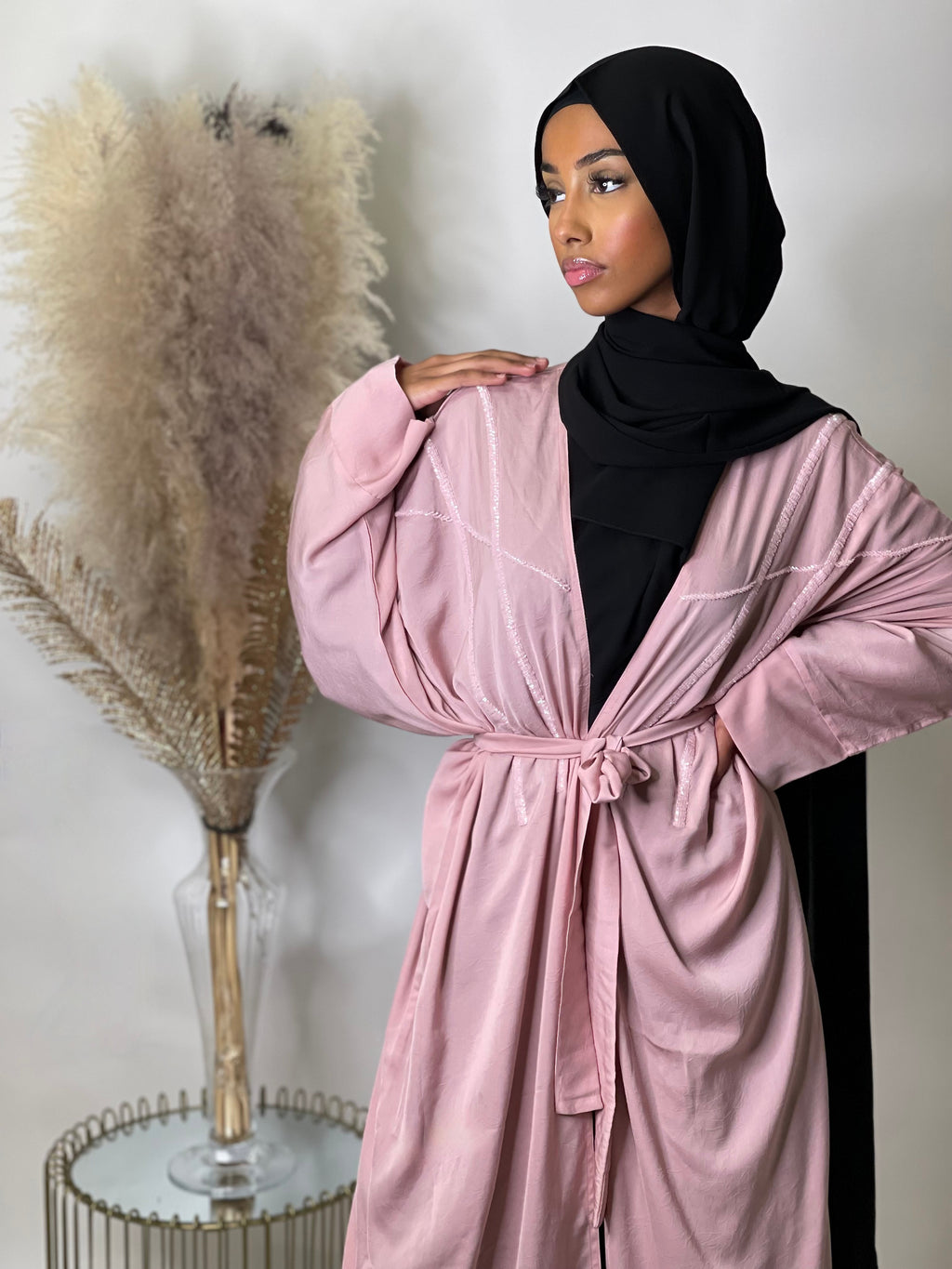 This collection features the silver on black, pink on pink as well as the white on white linen abayas. Perfect for summer weather. Its light to wear and flowy for comfort and stunning pictures.