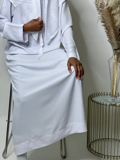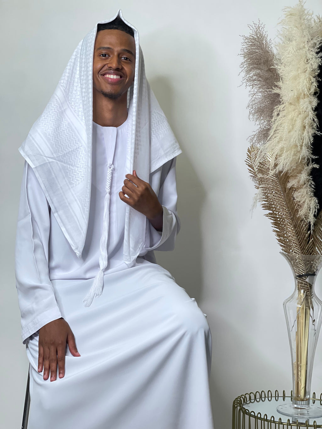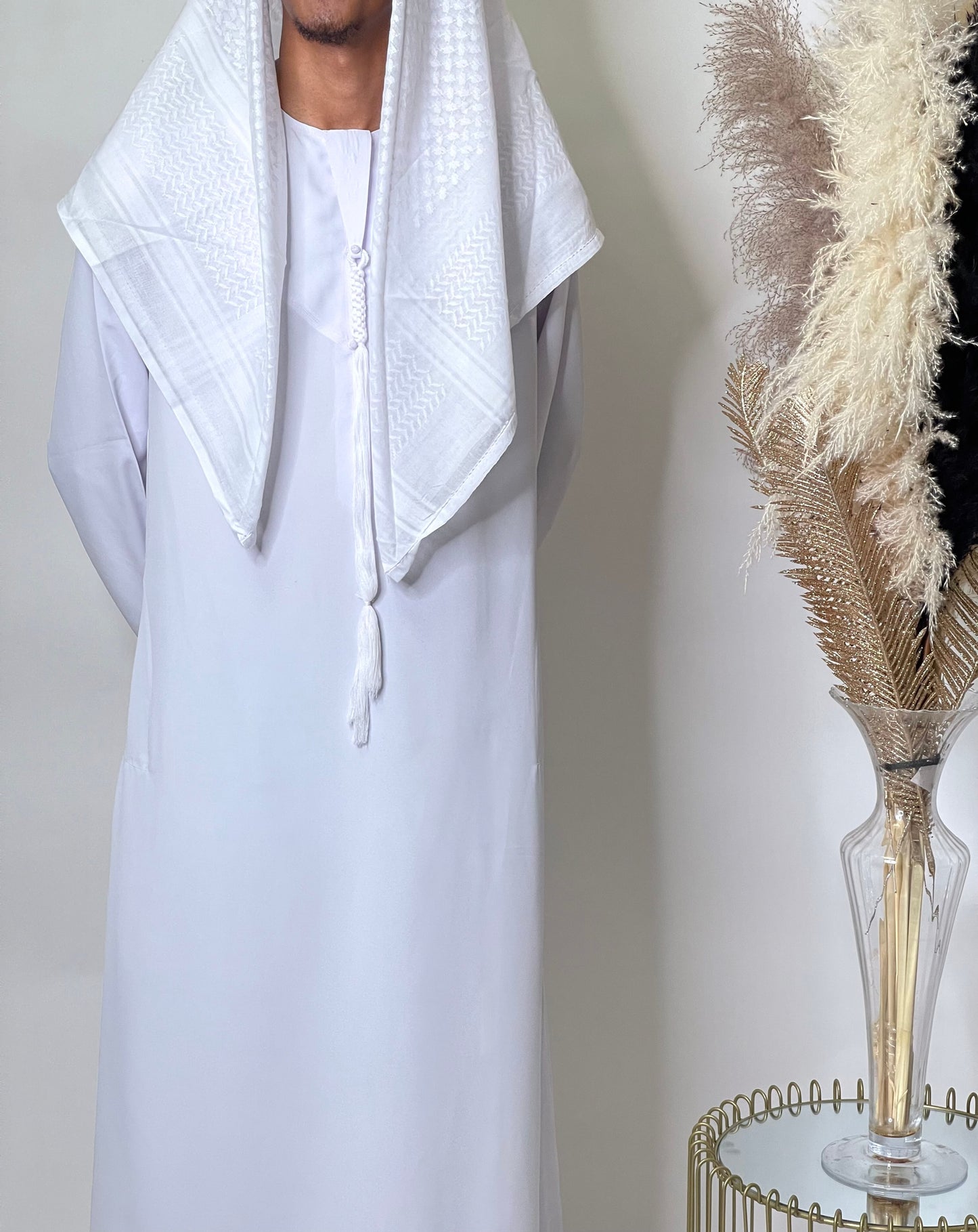 This is the ultimate off white khamis. It’s traditional, it’s casual, it’s stylish and simple. It’s versatile nature makes it a top seller (comes with a rope).