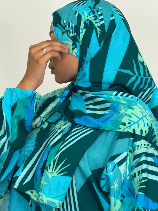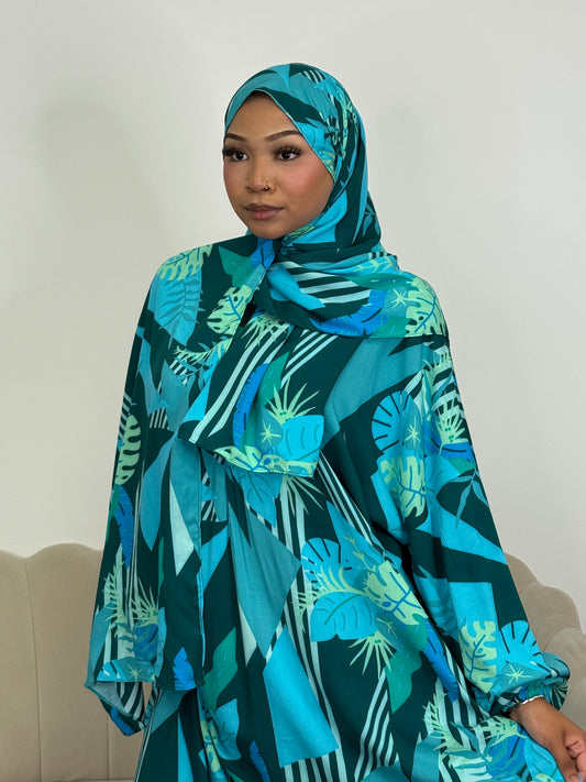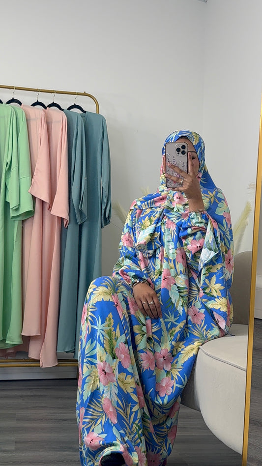 • Blue Floral Print abaya set