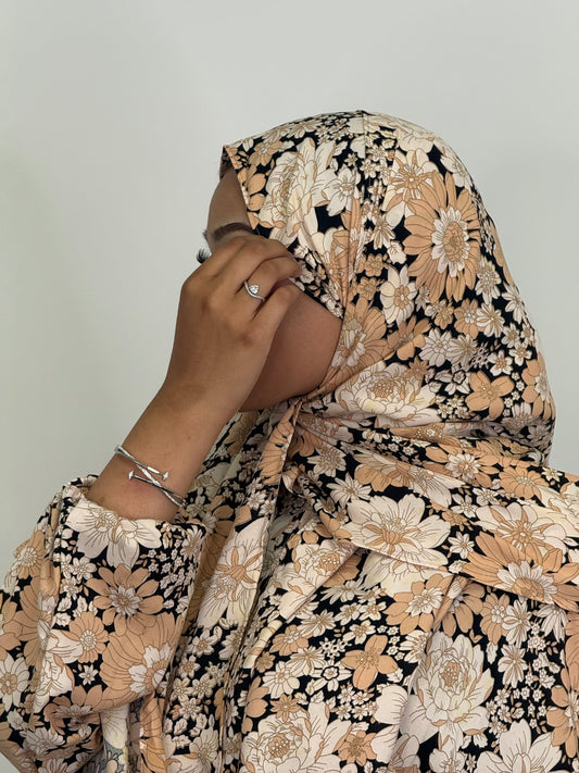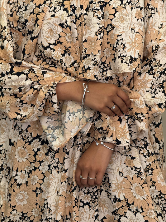 • Cream Floral Print abaya set
