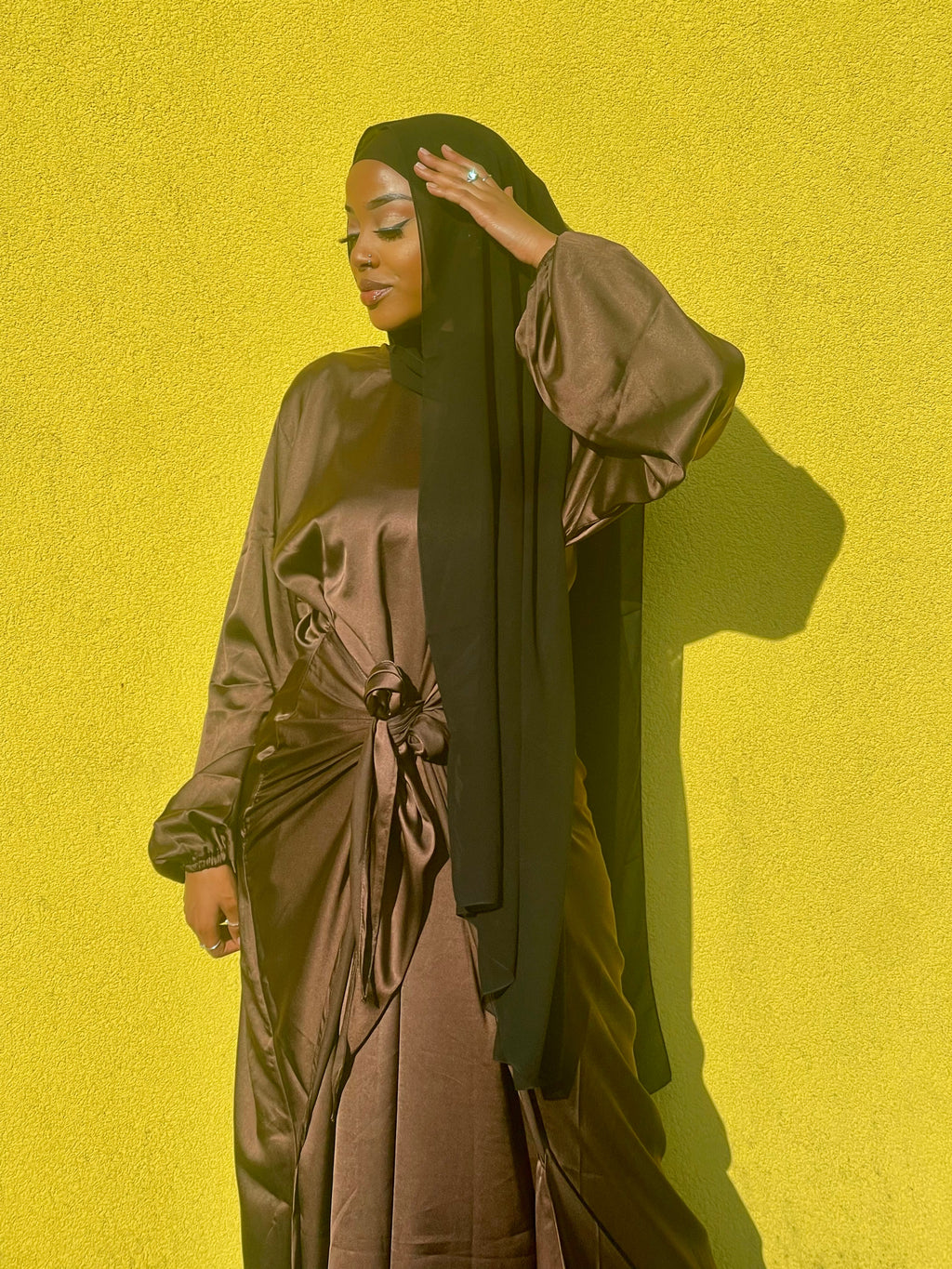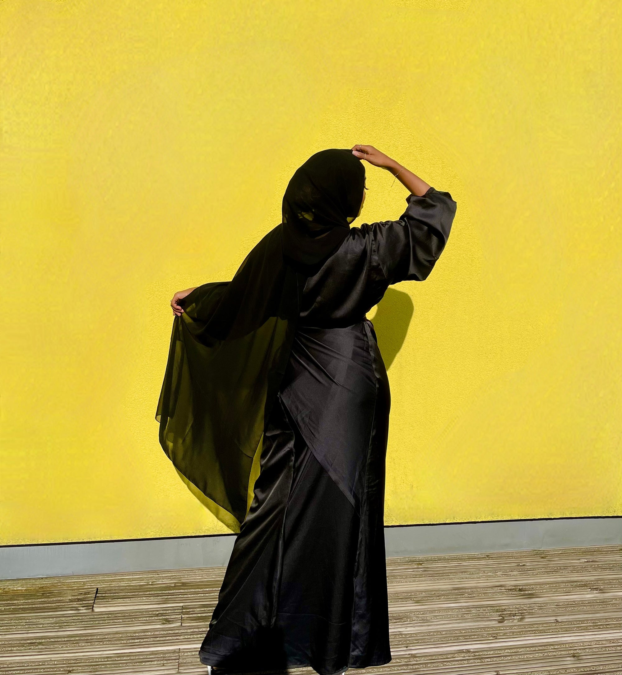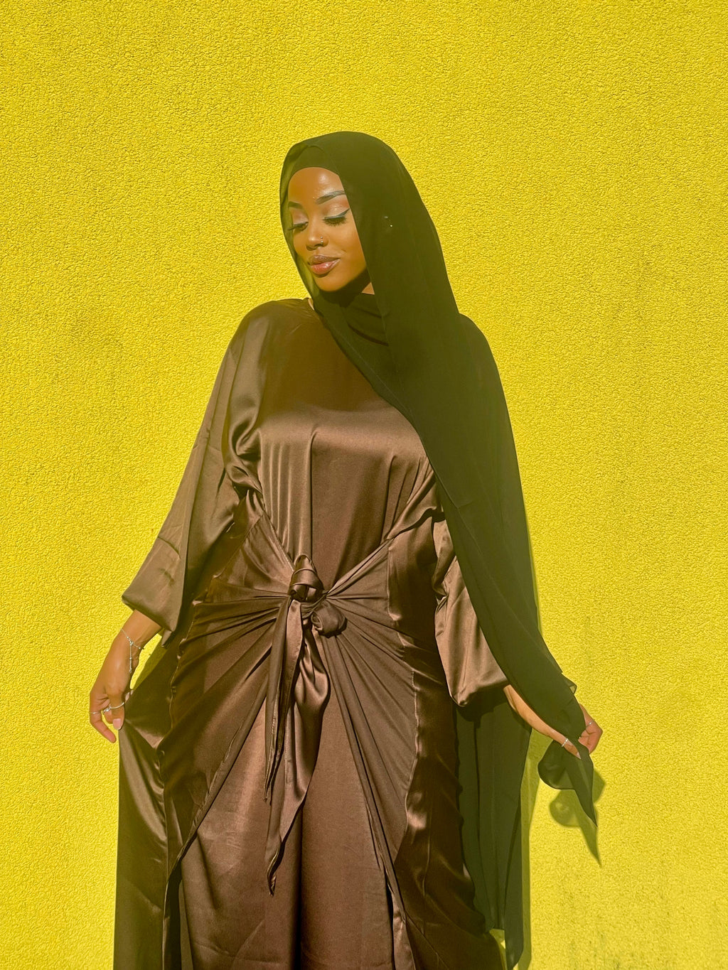 This satin wrap dress can be worn and wrapped both front and backwards giving the dress 2 different styles of wear.