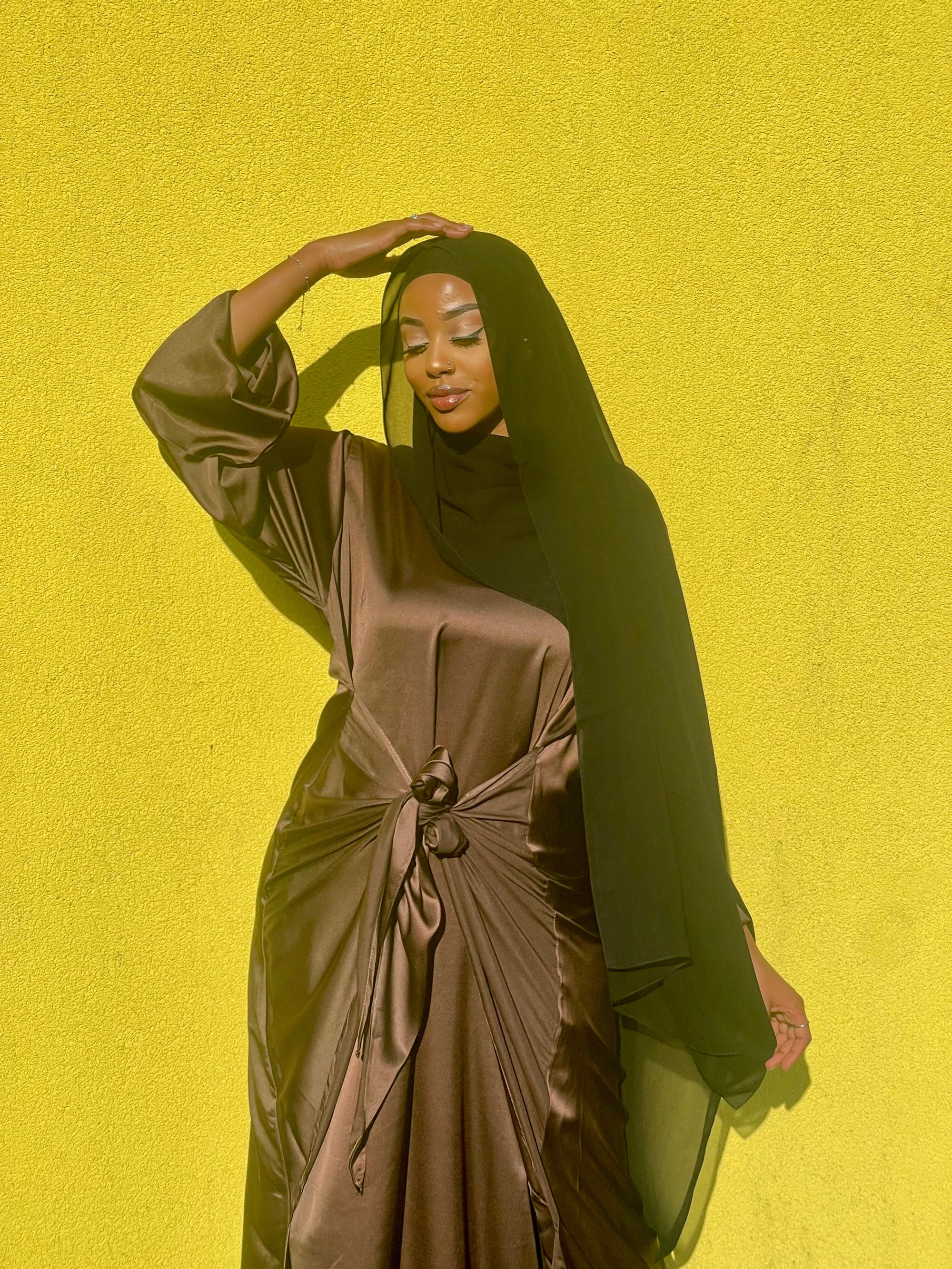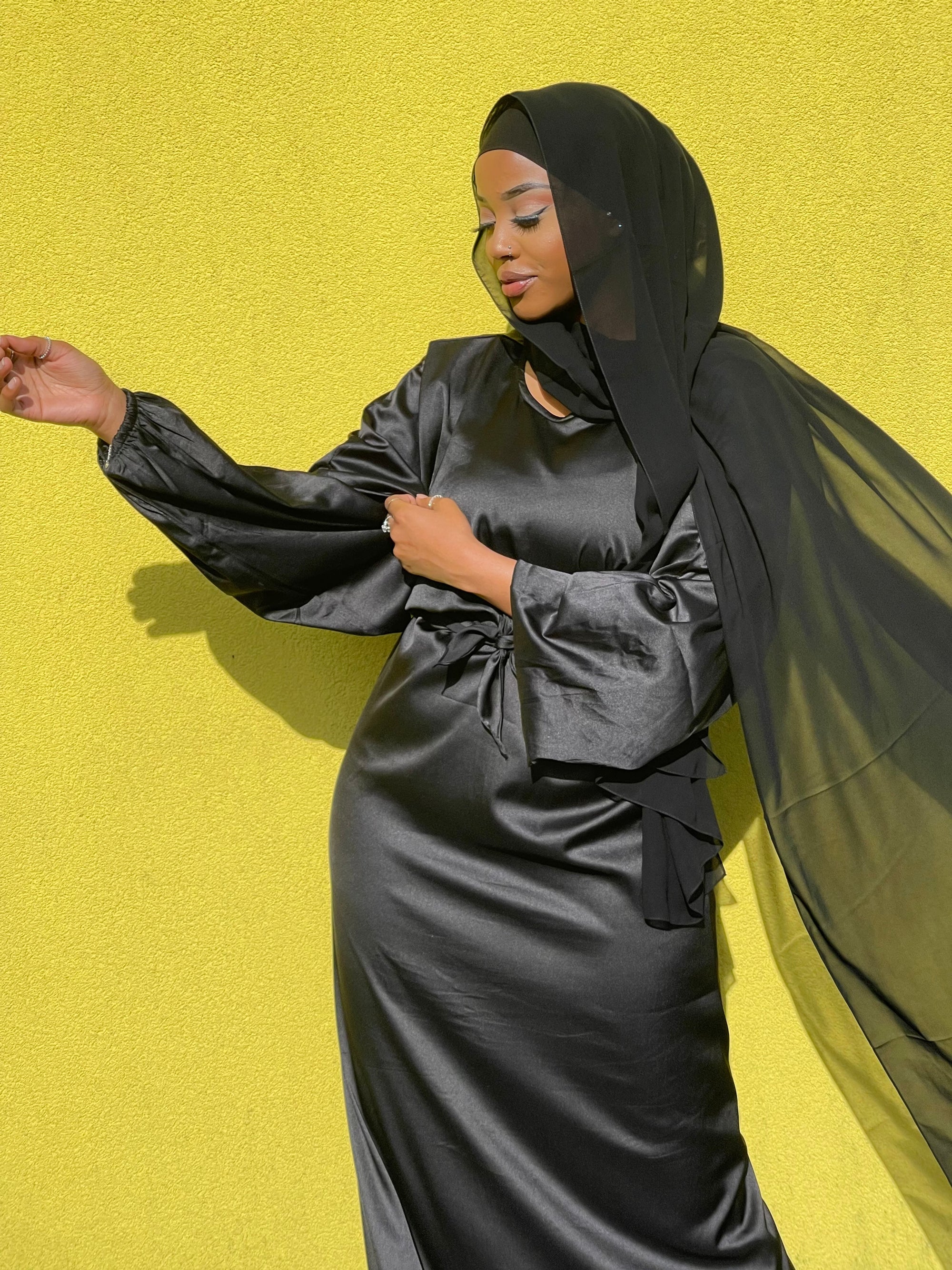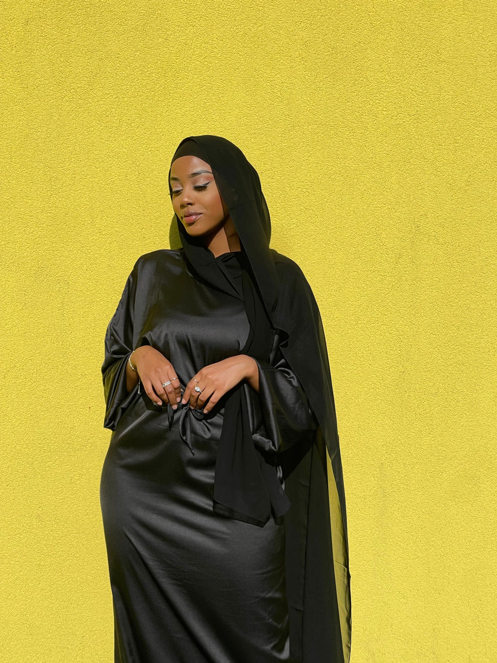 This satin wrap dress can be worn and wrapped both front and backwards giving the dress 2 different styles of wear.
